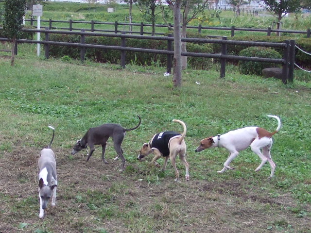 ジュリアちゃん、つばさちゃんが来るまで、小型犬エリアでヨーキーとパピヨンのクッキー君と遊んでました。