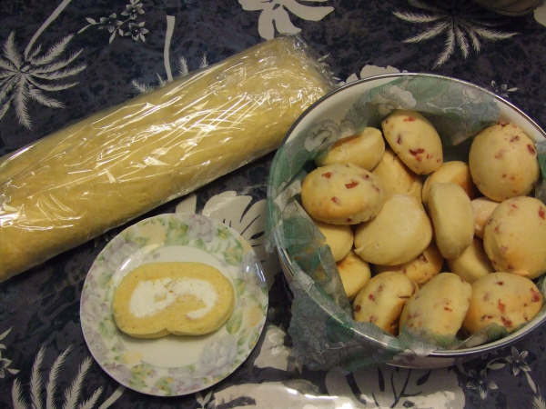 ロールケーキはヨーグルトクリームとパイナップル入り