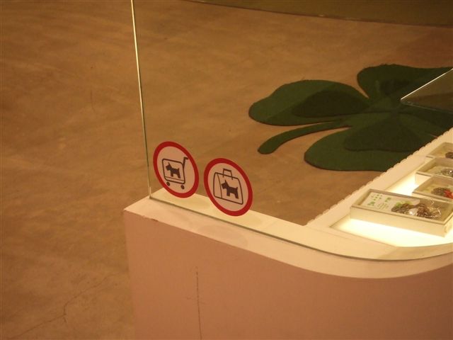 ワンコ×のエリアには、たて看板も有るけれど、判り難い!出来るなら、床の色分けをして欲しいなぁ。