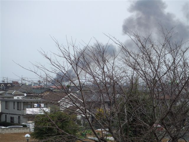 午前中、消防車のサイレンの音が続いたので、窓の外を見ると煙が!!