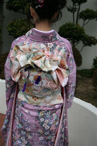 帯結びは花を二つ咲かせた華やかな結びです。