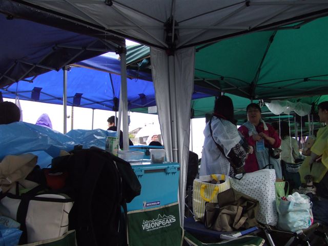 結構きているんですね。みんなシェードをくっつけて雨をしのぎます