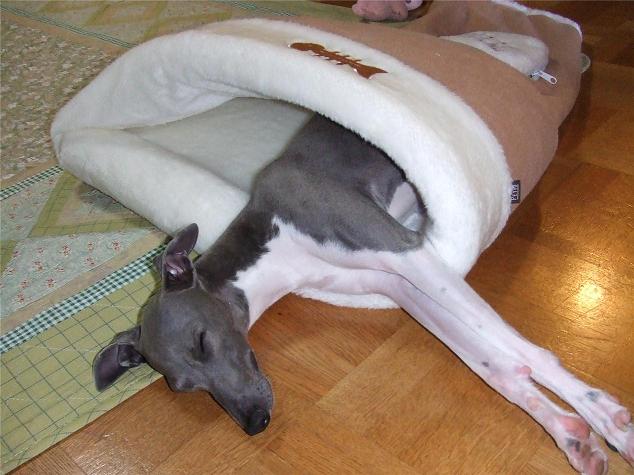 きっと¥800って値段で買ったのよね。でも、暖かくって気持ちいいワン!