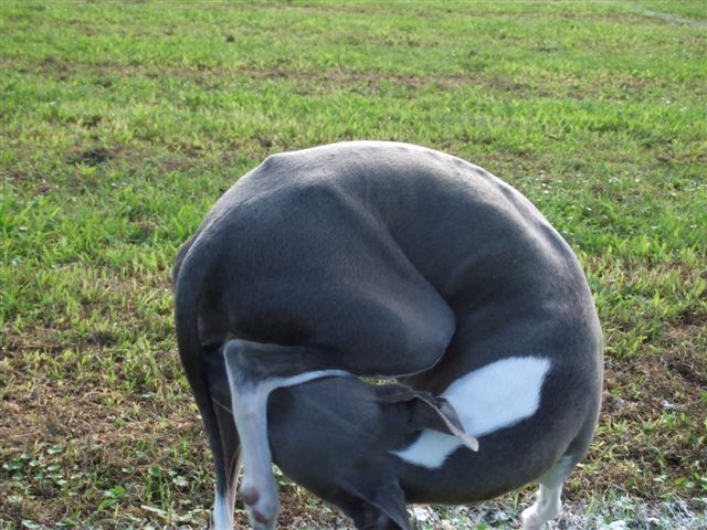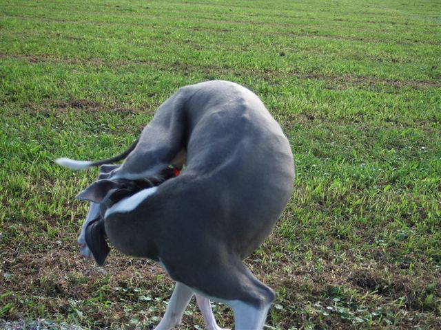 ヒート中のサフィーはいつも以上にキレイ好き お散歩しながらでも、遊んでいる時でも、キレイ、キレイ サフィーは外だとお座りをしたがりません。だから立ったまま、不安定な格好で何度か倒れそうになりながらもキレイ、キレイしています。 で、上手くバランスが取れると、立ったまま丸くなってキレイ、キレイをしています。 寝れいるときも丸くなるけれど、こんな時も丸くなるんだね。 お手入れが終わって、 遊び再開。 お父さんの所までGO