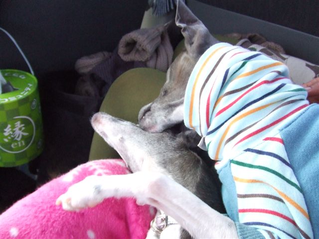 行きの車中のサフィーとキキ