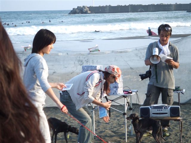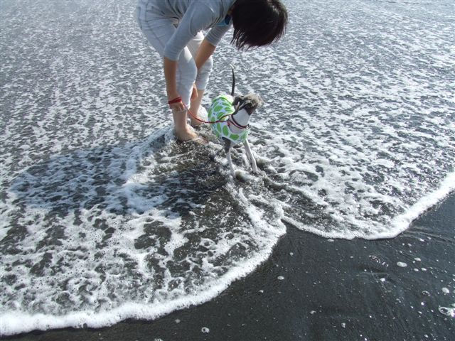 サフィーは、隣で開催されてたサーフィン大会の実況とBGMの音にビビリまくり