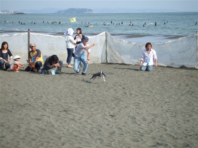 どの子もパパ、ママは必死の応援。おやつ作戦や大声で呼び寄せ作戦など、ワンコ以上に熱くなっています。