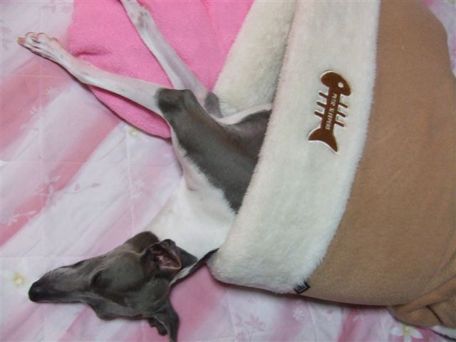 時折、寝ながら足を動かしていました。きっと昨日の海おさで一生懸命走った時の夢でも見ていたのかなぁ?