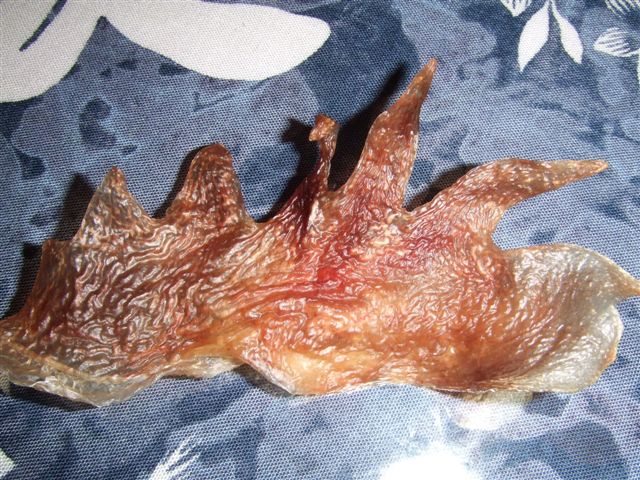 コラーゲン豊富だし、硬いからガム代わりになるし、牛皮みたいに噛んでいてもデロデロしないし、臭くないし、良いみたい。
