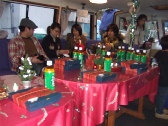 船内ではグラビス君パパとサンウィンちゃんパパがみんなの写真をスライドショーで見せてくれていました。