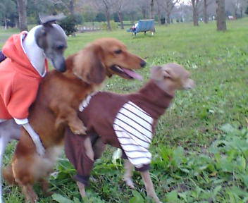 サフィーは公園でイタグレ友達と遊ぶのが楽しくって仕方ないようです。