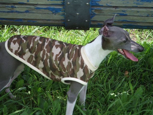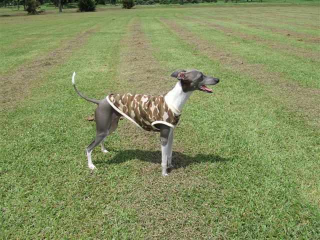 新しいお洋服を買ってもらいました。迷彩なんてカッコ良いでしょ!似合いましゅか?