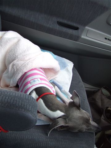 たくさん遊んだ後は、車の中でお昼寝でしゅ。