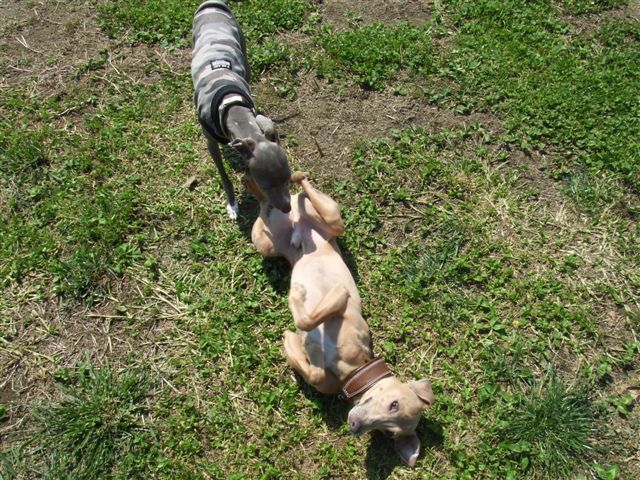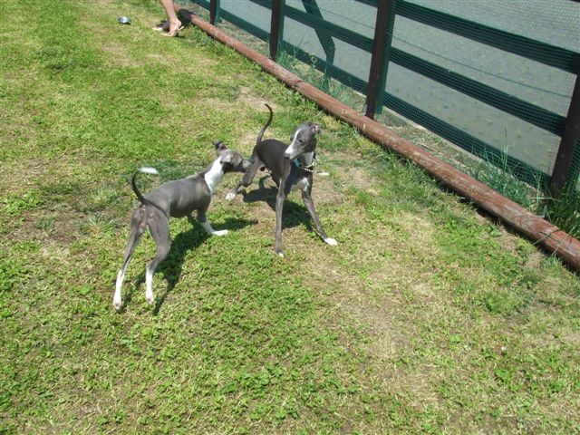 ウィペットの天君は銀君とお相撲でしゅ 辰巳の番町のソラ君はウィンちゃんに服従