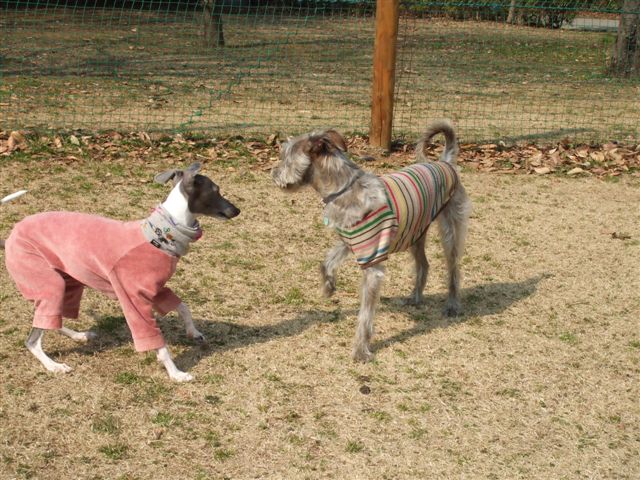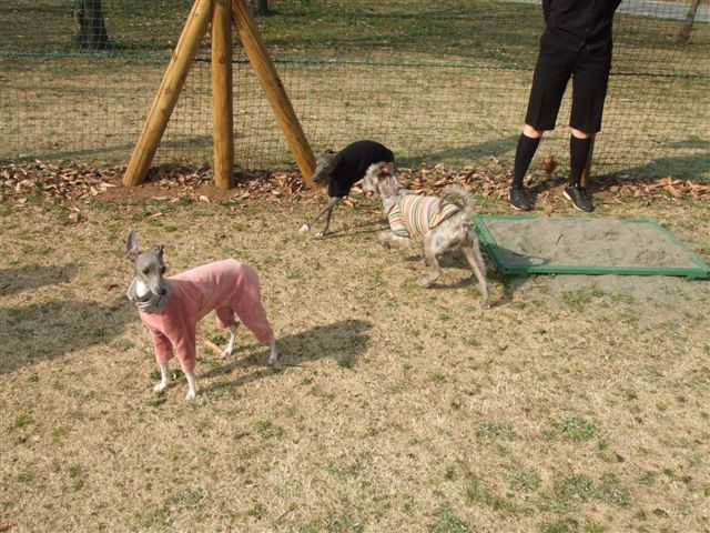 イタグレちゃんは来てなくて、一匹で小型犬で遊んでました。