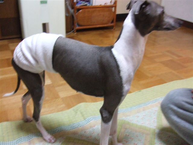 そして、腹巻をするんだよね。お腹に毛が少ないから温めないと!