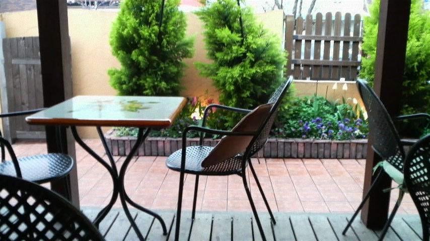 病院の帰りに、近くのパン屋さんへ。テラスはワンコOKです。