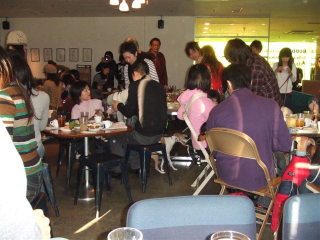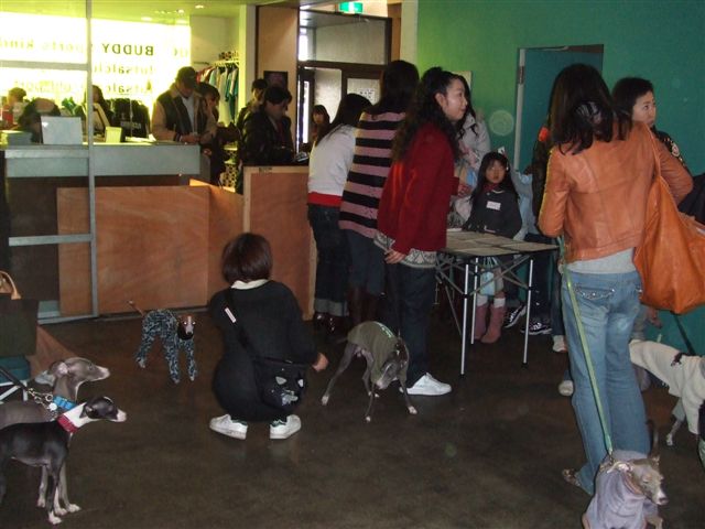 80名ほど入れる会場も、約60名のオーナーさんと同じく60頭程のイタグレちゃんたちで大賑わい。ワンコも人も仲良くほのぼのと交流タイム