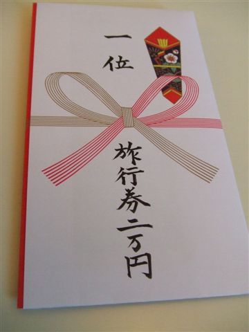 な、なんと!1等2万円旅行券は我が家がゲット!!