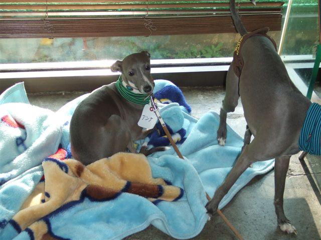 イタグレはおとなしくって静かだからと、特別に店内を使わせてくれました。