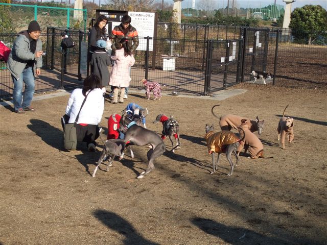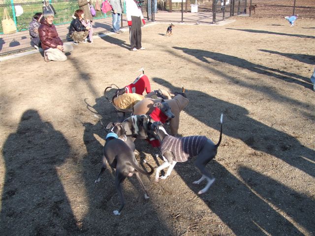 ず~~っと、尻尾が立ったまま元気に走っていました。 後ろに男の子の群れを引き連れて・・・