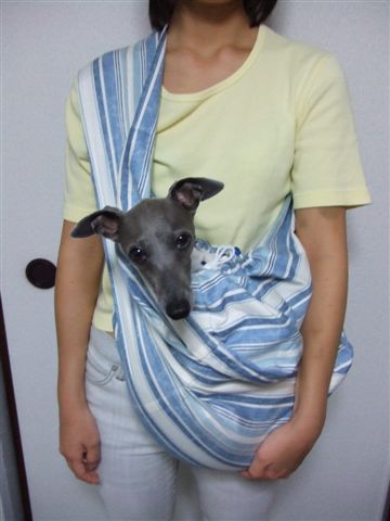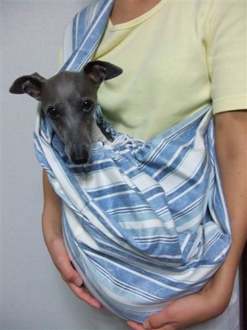 で、最近流行のドッグスリングはどうなんだろうと思い、手持ちの布に包んでスリングみたいに抱っこしてみました。